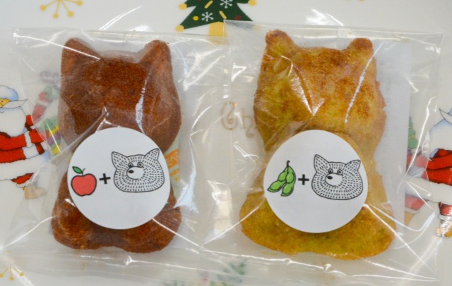 一方「秋田犬フィナンシェ~キャラメルりんご~」には、大館市中山産のリンゴを活用。傷が付いたり形が悪かったりして生食には向かない果実を、同市内の直売所「陽気な母さんの店」から仕入れる。リンゴにキャラメルを絡めて焼き、生地に入れて焼き上げる。